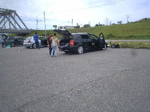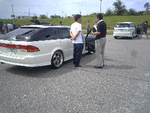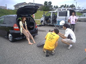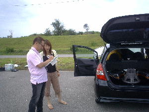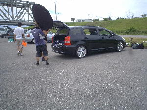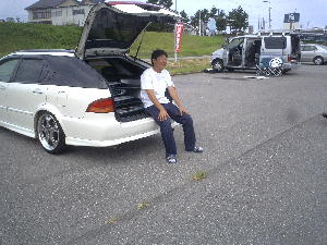 2005年8月28日 石川県美川町美し河原にて、『サウンドアップコンテスト』が行われました。 ![]() 撮影が1番始めだったせいか、まだ数台しか来てなかった・・・ ![]() ![]() 3台同時に撮影が始まりました。 フィットはオーディオより、ホイールのほうが注目されてました・・・(汗) ![]() フィットの審査は『サウンドアップ』『オートサウンド』で有名な小林さん☆ みんな1週間前に新潟で会ってたので覚えてもらってました。 ![]() ![]() 掲載は10月発売のvol.22です。お楽しみに〜♪ ![]() 審査後には改善点を真剣に聞いて勉強してる姿もみられました。 ![]() 最後にコンテスト会場での激写!!! ウィッシュに向かって近づく女の子が!? それも子供を連れて!?!? 『誰?』、『彼女?』、『人妻?』、『不倫?』、『隠し子?』 ドラッグサウンドメンバー一同大騒ぎ! 終始ラブラブだった2人♪ 詳しくは本人まで↑ |